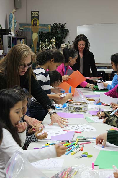 Don Bosco serves hundreds of children and youth each week in its after-school and Kids Caf� programs, providing the children with enrichment, safety and a hot meal, until a parent or guardian returns from work or school. On Thursday December 5, 2013, members of FFTA's staff visited with the children to provide a fun and festive art activity, inviting the children to make Christmas cards and holiday decorations for friends and family. Assisted by FFTA staff members, approximately thirty elementary school children energetically crafted their special creations, demonstrating focus and creativity in their work.